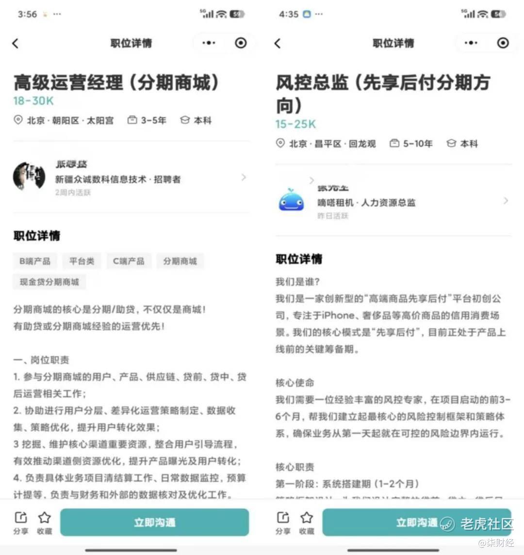 例如,新疆众诚数科在高级运营经理(分期商城)的职位详情中特意指出:分期商城的核心是分期/助贷,不仅仅是商城!