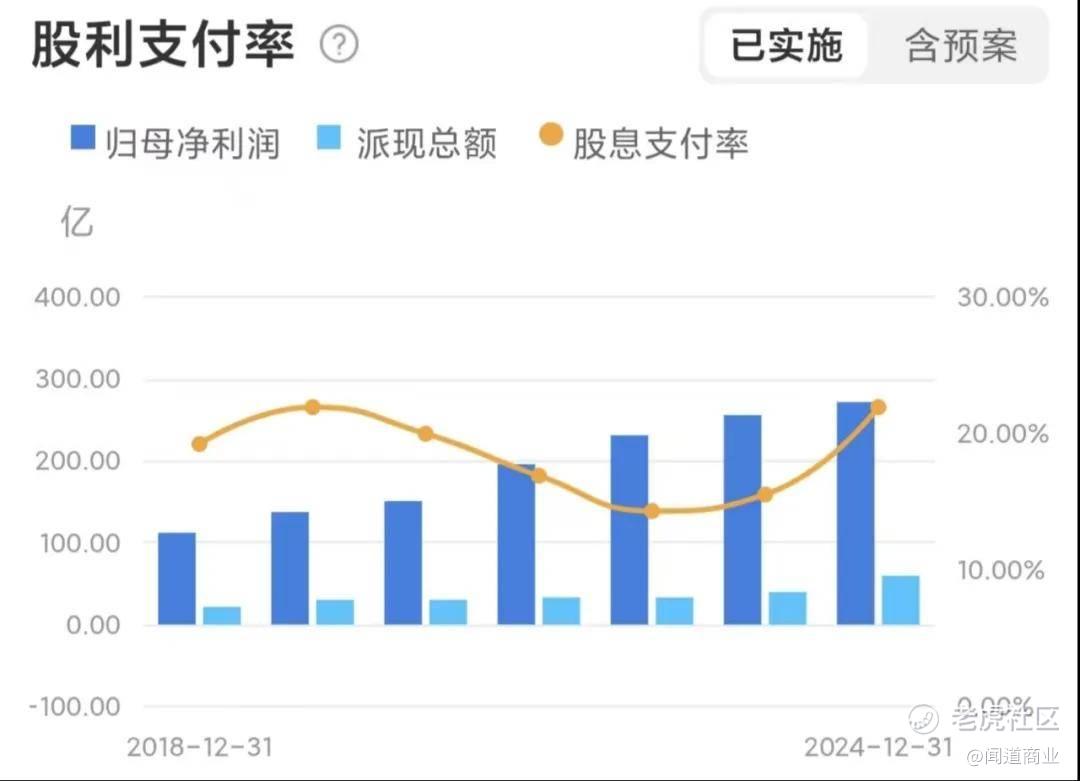2024年,宁波银行拟向普通股股东每10股派现9元(含税),股利支付率(分红比例)21.91% ,为近三年最高,但排名在42家上市行中偏后。