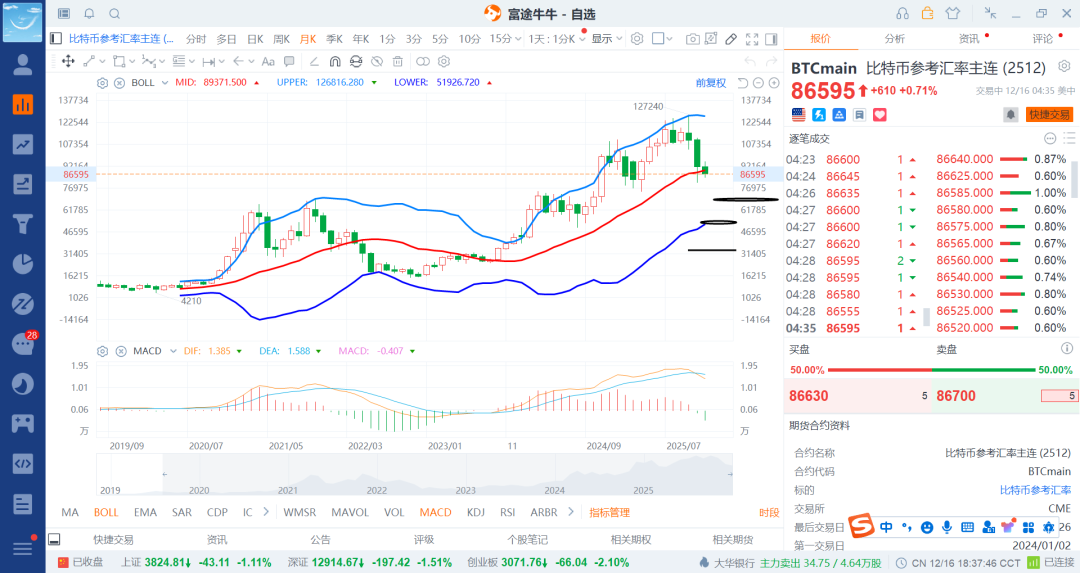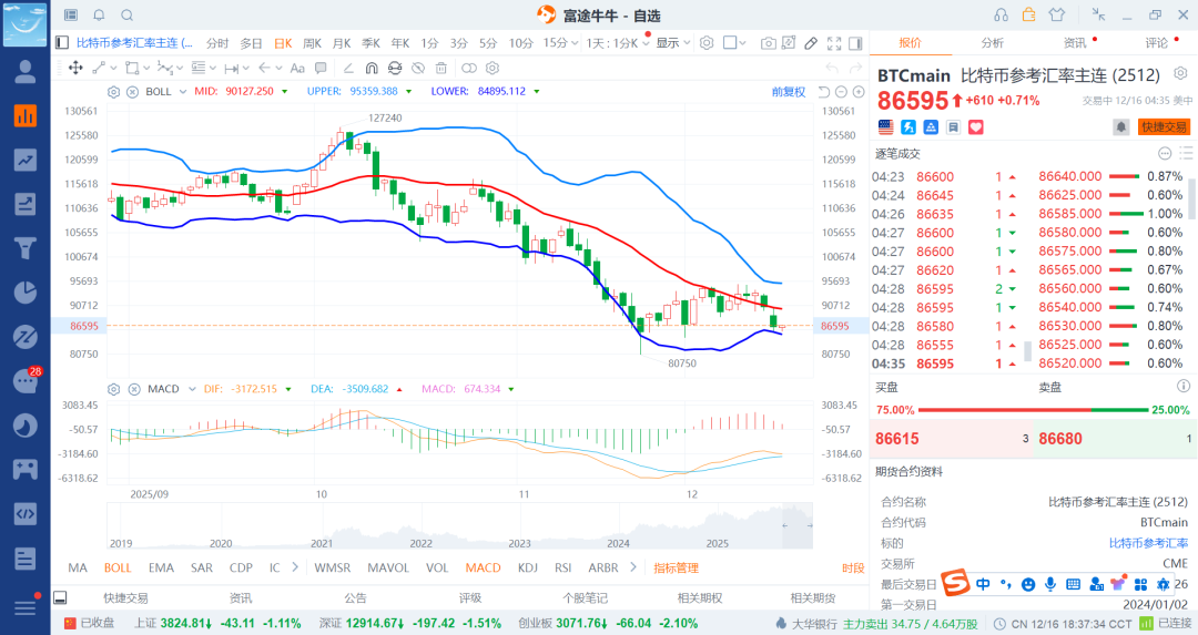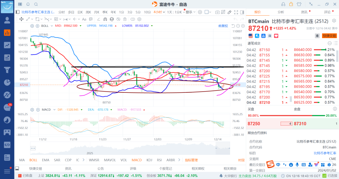 25-12-8 数字货币之比特币震荡跌回补回一笔多(2)