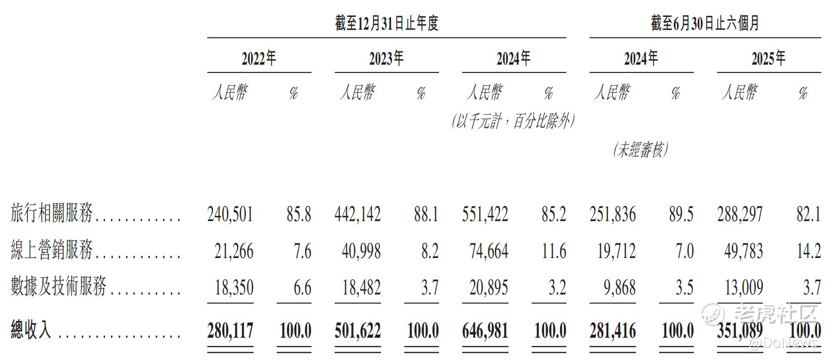 2025年上半年,活力集团的业绩延续了增长态势,其营收同比增长24.91%至3.51亿元,而净利润则同比增长48.50%至4709.2万元。在招股书中,活力集团将净利润增长的原因归结为“旅行相关服务及线上营销服务收入增加以及一般及行政开支减少”。