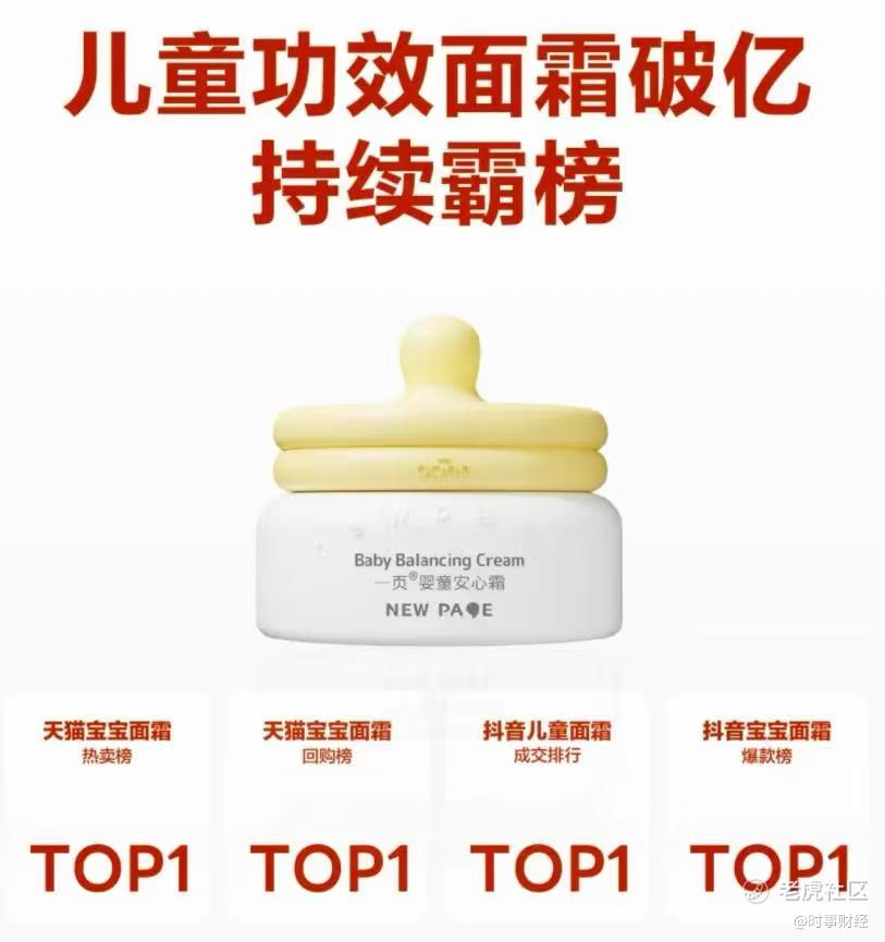 可以看到,一页品牌已逐步打造出婴童安心霜、婴童安心护唇膏、婴童高保湿身体乳、婴童润肤油等一系列明星单品。以婴童安心霜为例,这款产品双11销售额已破亿,霸榜天猫、抖音平台四大榜单TOP1。