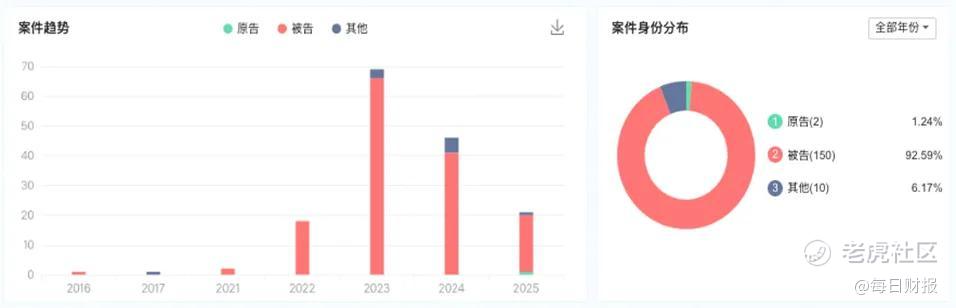 且自2024年起陷入债务泥潭,不仅其持有的恒大人寿、重庆农商行等多家金融机构股权被冻结,而且经营风险颇高,面临大额司法诉讼、失信被执行人和限制高消费等缠身。根据企查查数据显示,目前财信集团作为被告的司法案件数量达150件,涉案金额总计高达161.07亿元;历史被执行人74次,被执行总金额150.79亿元;实控人卢生举被限制高消费34次,涉案总金额高达87.97亿元。