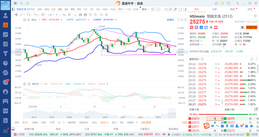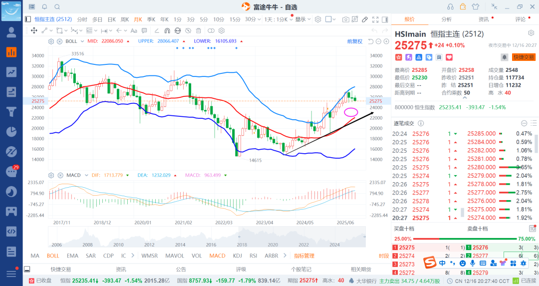 后续就是等调整比较多的时候逐步补回即可,现在还不是持续买入的时候了,这样看的话港股推导就知道美股很大概率有一波比较大的跌幅时间段,要是港股不跌直接拉,那么后边就是以中期做空位置一波再说了,这个在a股的具体分析26年会有。