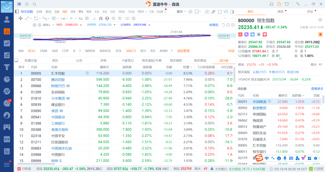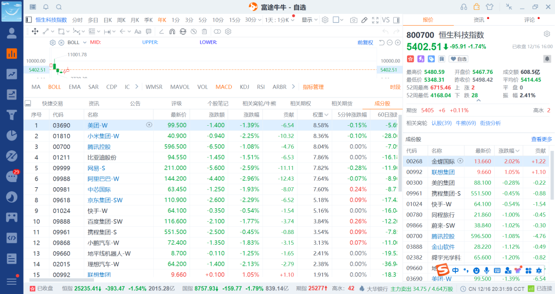 再来看下港股的主要几个成分股