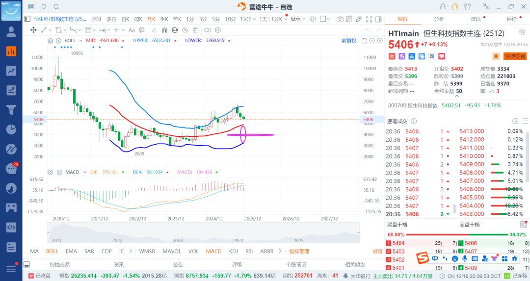 而中概(恒科)就基本不用打折扣了,现在是5400附近价格了,调整15-25-35%就是4600-4000-3500,差不多也是符合之前技术面上的看法了。