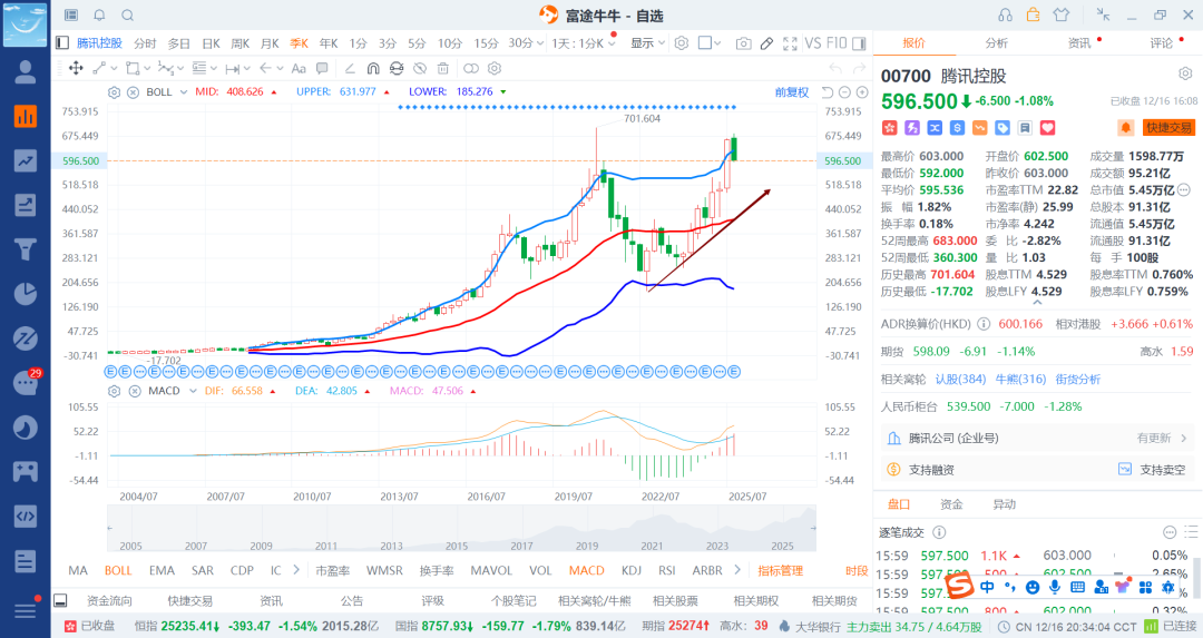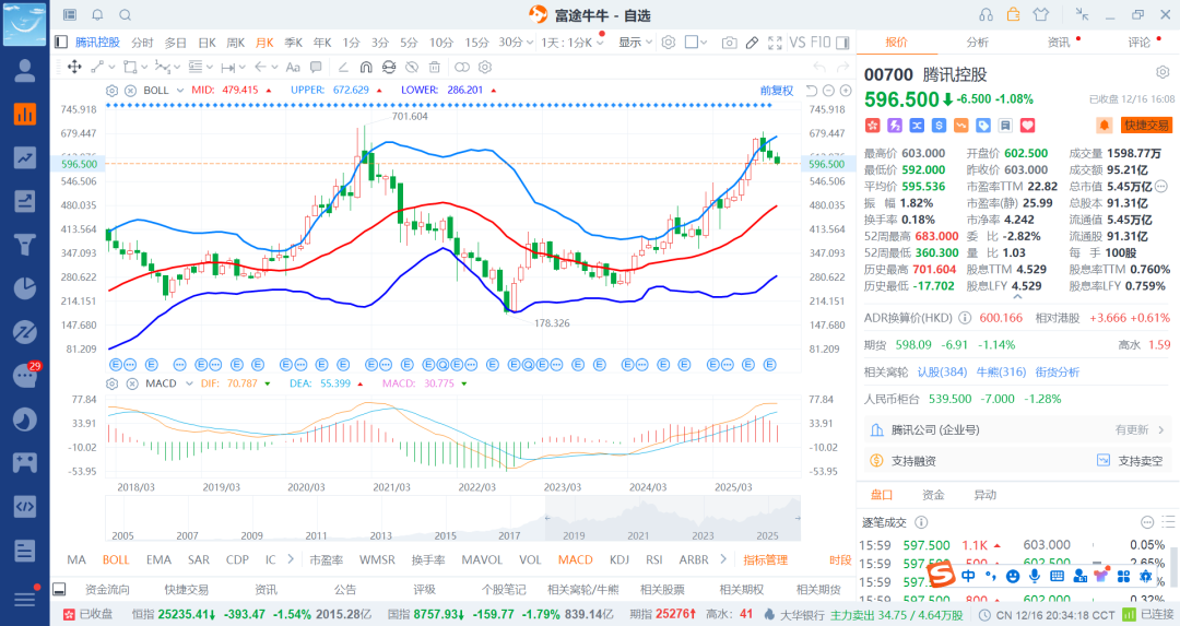 从腾讯的角度来看,给到400-500还是大概率的了,而且到了前高并么有过去,这一波大概是翻了两翻了,从180到(分红)到680算是不少了,那么调整个30-40%不要太正常了,也就是差不都四五百的价格了,那么26年看到哪里呢,一个是不破,但时间拉长点到1000问题不大。
