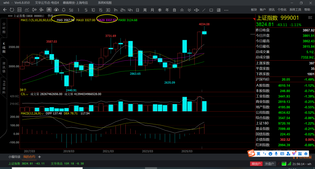 也就是a股如果调整下方就是3650/3550-3350/3300附近,基本锁死了下跌的空间了,上方就是4k3-4k5,到5k难度比较大。