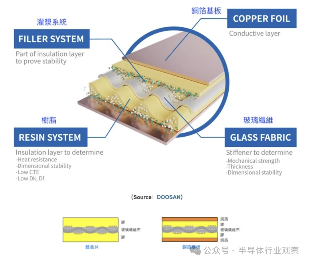 在先进封装工艺中,CCL 作为核心层,通过 ABF和精细间距工艺进行堆叠,最终形成先进的封装基板。这些基板是芯片模块与系统之间的关键桥梁,能够实现信号扇出、电源分配和机械支撑。它们对于现代高性能处理器、GPU 和 AI 加速器而言至关重要。