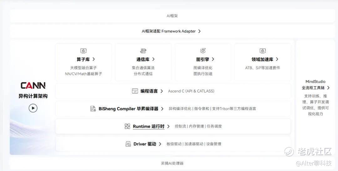CANN的全面开源开放,让编译器、算子库、运行时等核心组件完全可见,开发者可以直接洞察硬件的运行逻辑,进行更深层次、更精准的性能优化,等于将创新的主动权交还到了每一位开发者手中。