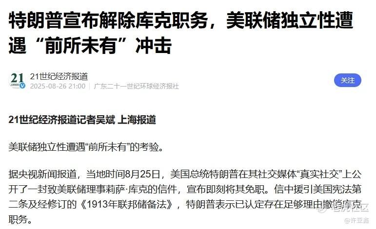 我之所以重点提这件事,那是因为黄金8月底行情突破3400-3500的时候,刺激因素同样也是与美联储有关,与川普有关,如上图看这个新闻,各位有印象吧?!