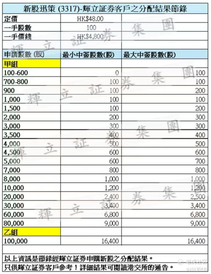 迅策(3317)出分配结果了,7手稳中1手,甲尾90手,乙组164手,货是真多;定价:48,一手100股;具体分析可以看看上一篇文章,只做参考,不做投资买卖建议。