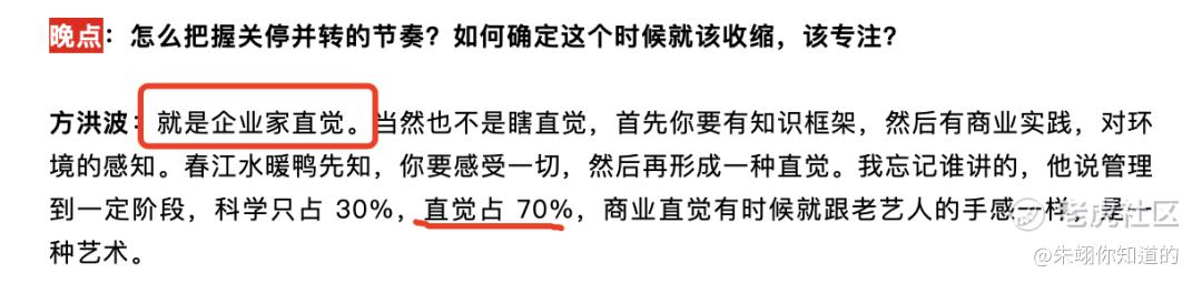 在晚点对他的采访中,他承认了自己的很多决策均来自直觉。