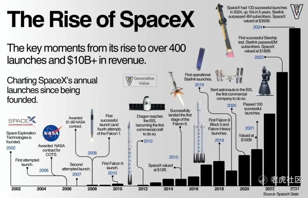因为 SpaceX 已经完成了从火箭公司向“太空版英伟达+苹果”的蜕变: 它既通过星链(Starlink)垄断了全球通信底座,又通过星舰掌握了进入太空的绝对定价权。