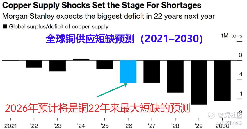 我的意见是大家在 2026 年继续拿稳这2家公司。 根据摩根士丹利对基础金属市场的研究,2026 年全球铜市场预计将出现约 60万吨的供应缺口,是过去二十多年最紧张的供需失衡之一。
