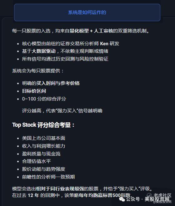 每一家美股 公司都提供明确的Buy Point 参考、目标价区间与 0–100 分的综合评分,并在趋势变化时给出及时卖出提醒。无需盯盘、适合中长线投资者,不靠情绪,用数据与纪律,帮你构建一个真正跑赢市场的长期投资组合。