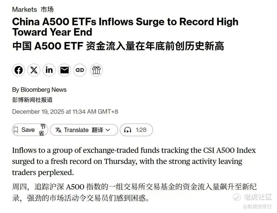 彭博上周五就发了一则新闻,提到A500ETF基金异常强劲的资金流入情况,并称“强劲的市场活动令交交易员们感到困惑”。
