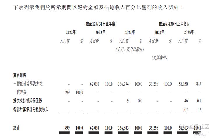 壁仞的主要收入来源包括产品销售(含智能计算解决方案及代理费)、支持或延保服务提供以及智能计算集群租赁收入;收入呈现持续快速增长态势,2022年至2023年从人民币50万元增至0.62亿元,主要因公司于2022年8月推出特专科技产品后,2023年该类产品的12名客户通过智能计算解决方案贡献全部0.62亿元收入,2023年至2024年进一步增至3.37亿元,核心驱动为单客户收入提升,而截至2025年上半年公司收入由上年同期的0.39亿元增至0.59亿元,同比增长49.9%,主要得益于客户需求上升及客户结构优化(纳入更多所选行业领先企业)带来的智能计算解决方案收入增长。