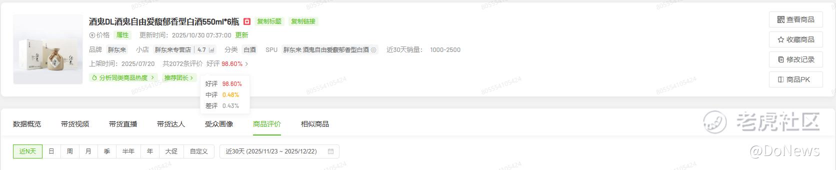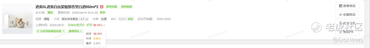 热销的背后,是过硬的品质支撑。在抖音胖东来专营店,该产品两款链接(550ml*6、550m*l2)的好评率均稳定在98%以上。胖东来创始人于东来更是直言:“酒鬼自由爱的酒质,相当于市场上600元左右酒的品质。”