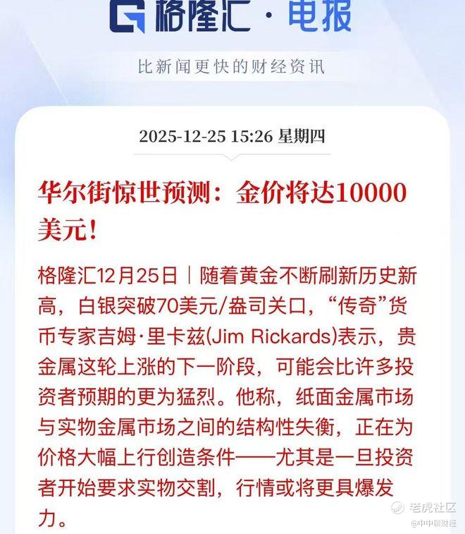 第三个,华尔街的惊世预测,2029年底,金价将达10000美元,当前黄金大约是4500美元/盎司,按照他的说法,会翻倍,这可能吗?我不敢想象,如果真的成了事实,那一定会发生点什么。比如,大规模战争、世界大乱等。