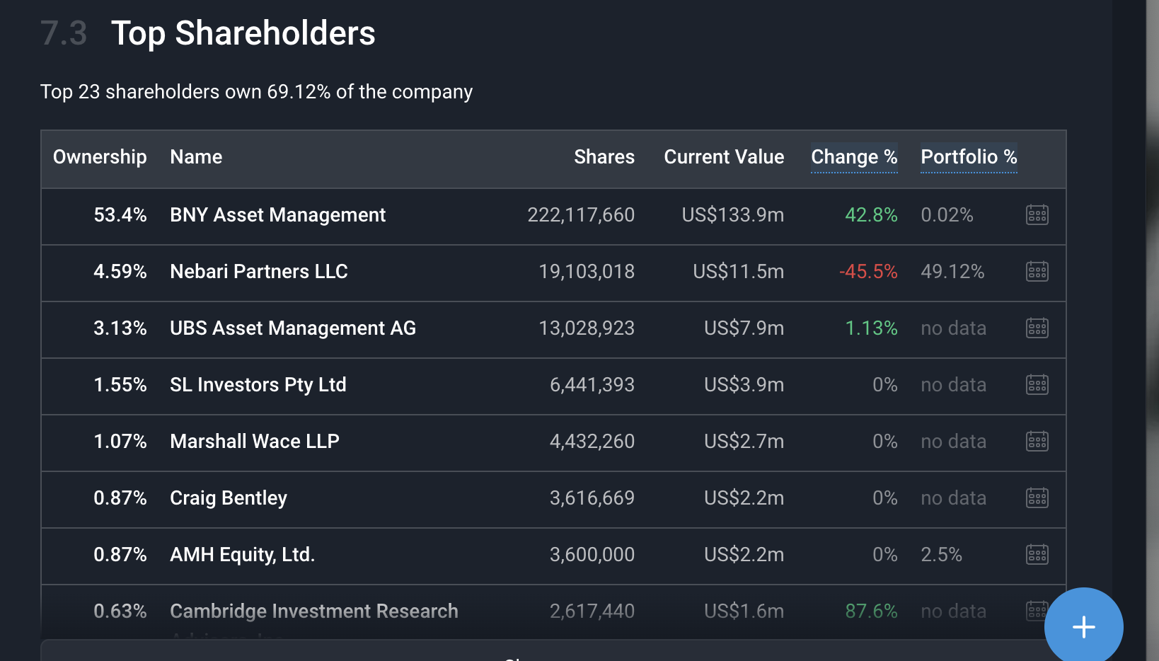 全球十大资产管理公司的BNY 纽约梅隆资产管理公司, 持有NVA比例居然达到了53.4%,比富途上显示的45%还要多.