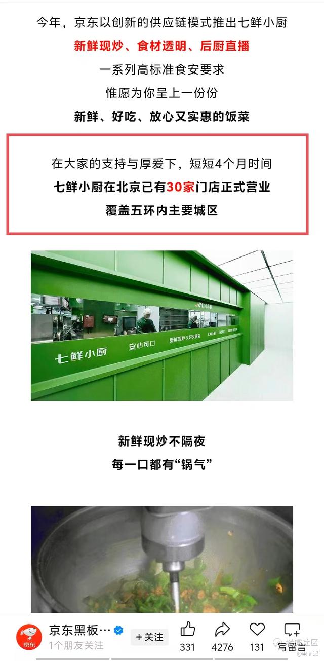 而七鲜小厨正是京东在餐饮领域的供应链创新探索,“新鲜现炒”也因此成为其最鲜明的特色标签。