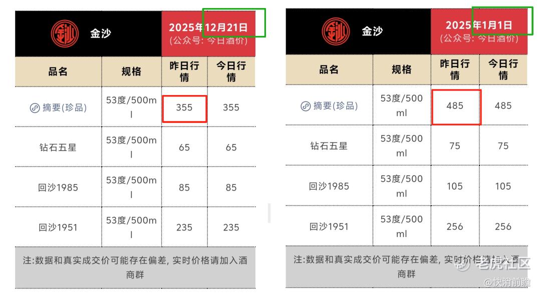 截至12月21日,快消前瞻查询《今日酒价》数据显示,珍品摘要市场批发价已跌至约355元/瓶,相比年初的485元大幅下跌130元。
