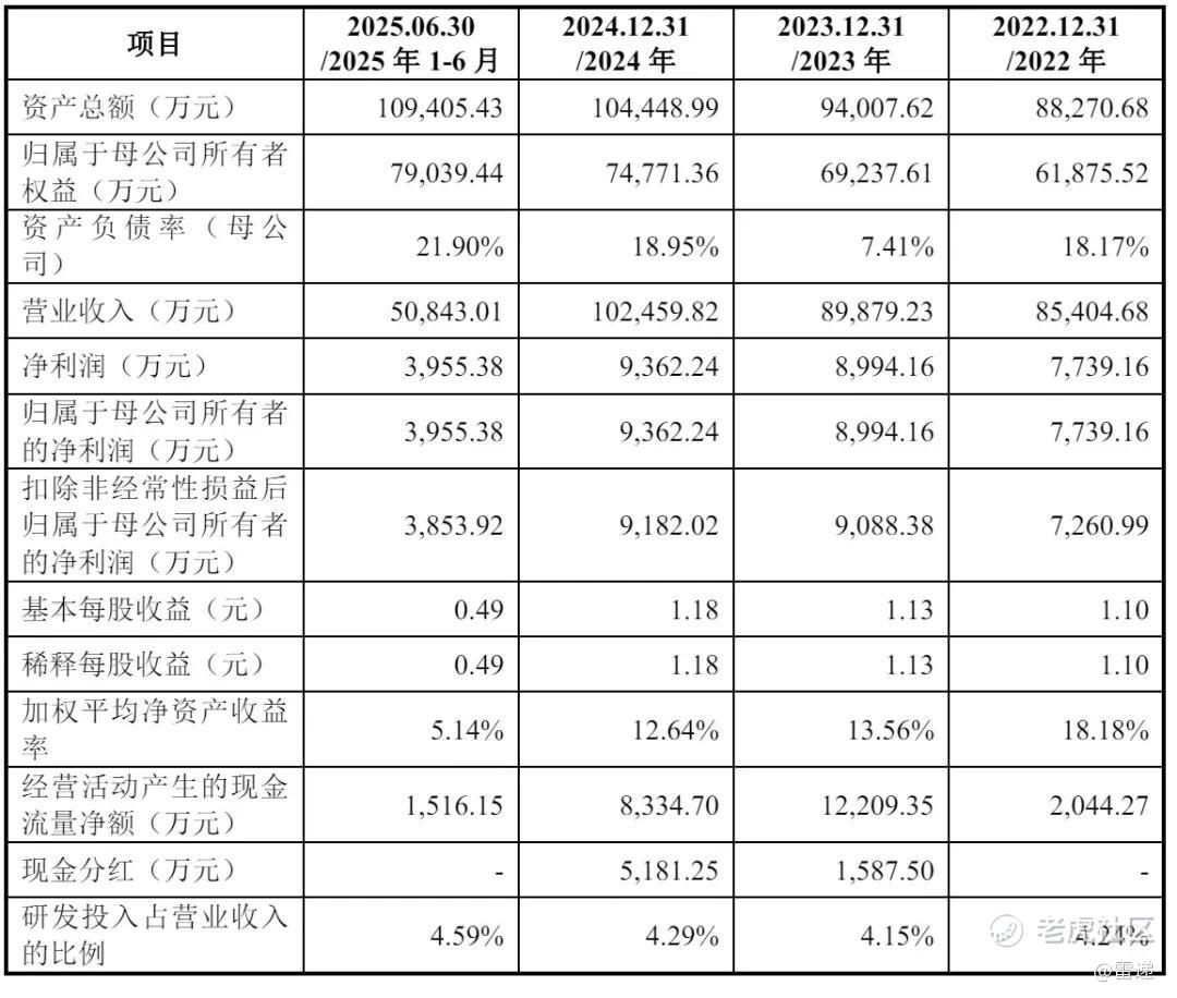 优邦科技2025年上半年营收为5.08亿元,净利为3955万元,扣非后净利为3854万元。