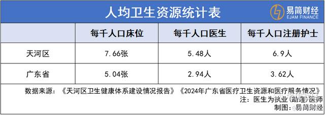 目前,天河区每千名常住居民拥有7.66张床位、5.48名医生和6.9名注册护士,这些数字均高于广东省的平均水平。