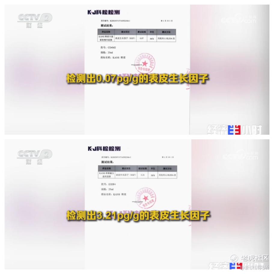 此次曝光显示,央视记者将韩束丰盈紧致精华面膜、韩束嫩白透亮面膜送往有资质的第三方机构检测,结果分别检出0.07pg/g和3.21pg/g的EGF。