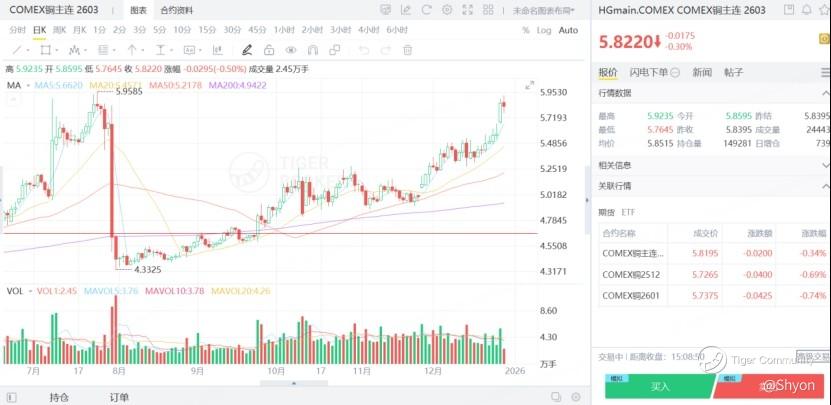 在我看来,2025 年期货市场最清晰的一条主线,就是贵金属与工业金属在同一时间被系统性重估。黄金与白银率先走出历史级别行情,更多体现的是全球货币体系不确定性、地缘政治风险以及长期通胀预期的集中释放;而随后接力的新高品种——铜与铂金,则明显带有更强的产业属性和现实供需逻辑。这种从“避险金属”向“工业贵金属”的扩散,本身就说明市场正在从情绪驱动,转向对未来经济结构变化的提前定价。