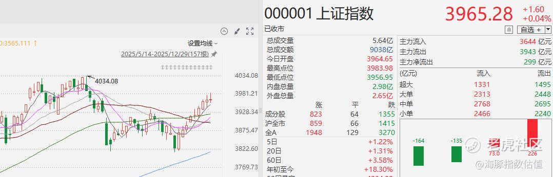 回到A股,今天A股中位数涨幅-0.48%,1995只上涨,3332只下跌。今天值得一说的是,上涨指数今天微涨0.04%,已经9连阳了: