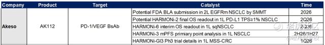 尽管三生SSGJ-707和信达IBI-363合作伙伴在今年刚启动全球三期注册临床,其中SSGJ-707一线治疗非小细胞肺癌、结直肠肠癌三期临床将在2029-2030年完成,但值得注意的是:康方生物的AK112要在2026年迎来大量关键里程碑,这对于三生的SSGJ-707后续验证有着举足轻重的重要意义。