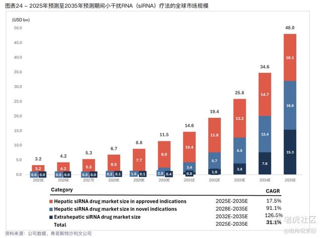 过去,PCSK9和TTR靶向的小核酸药物已经成功上市并商业化放量,市场预期诺华Inclisiran和阿里拉姆的Amvuttra有外资券商分别给出了38亿美元、72亿美元的销售峰值。