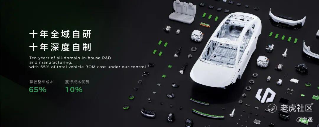 经过十年的沉淀,我们自研自制的核心零部件的比例已经占到整车BOM成本的65%,如果按供应商平均15%毛利率计算,与外购相比,零跑整车成本有10%的优势,随着零跑销量规模的不断扩大,这个优势就越来越明显,这个也是零跑未来持续竞争力的护城河。很多人都说零跑不仅仅是一个整车公司,更是一个规模超大的零部件公司。