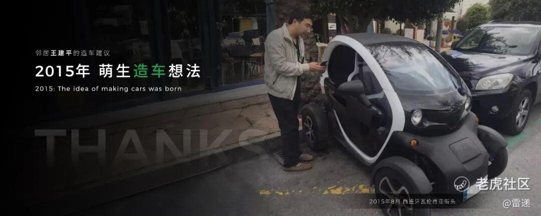 曾经很多人问我你为什么会造车,其实第一个建议我造车的是我的好朋友,好邻居王建平先生,我们一起在西班牙旅游的时候看到雷诺的电动小车,萌生了造车念头,这张照片就是他帮我拍的,今天建平也来到了现场,大家来点掌声,表示感谢!