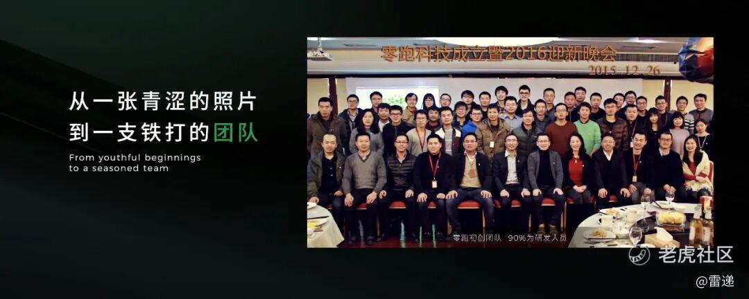 我们现在的很多高管都在这张照片里面,特别是整车和三电的产品线的高管十年都没有变。看看他们,再看看自己,十年都为零跑付出了很多,很多,这张照片没有P过,那时的我们都很年轻,很青涩。