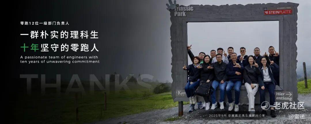 这是近期我们高管团建拍的照片。他们有很多特点:很朴实,没有大牌,不过有一点,都是理科生,大多数都从工程师做起,我们十三个人里面有九个人在零跑呆了十年。