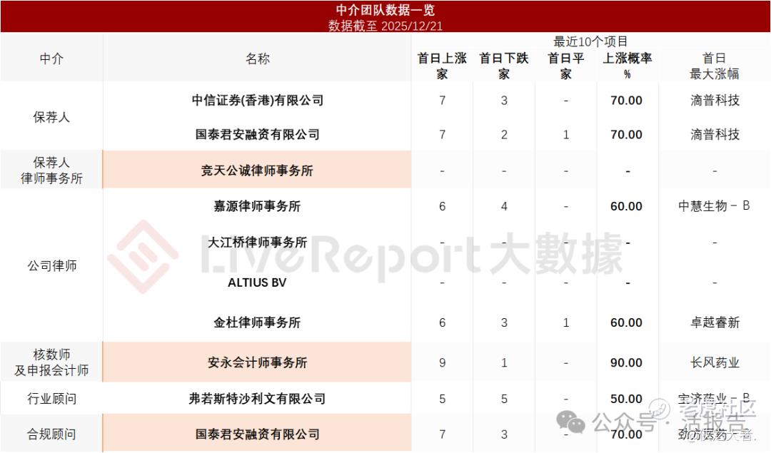 据**大数据统计,长光辰芯中介团队共计10家,其中保荐人2家,近10家保荐项目数据表现尚可;公司律师共计4家,综合项目数据表现普通。整体而言中介团队历史数据表现中规中矩。