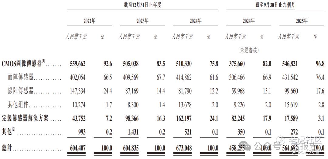公司是CMOS图像传感器(CIS)提供商,2024年收入6.73亿元人民币,净利润1.97亿元,毛利率58.96%;2025年前9月收入5.65亿元,同比增长两成,净利润1.48亿元,同比增长近四成,毛利率64.21%。