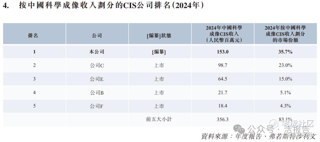 于2024年按科学成像收入计,公司在全球CIS公司中排名第三,在中国CIS公司中排名第一,占全球市场份额的16.3%。