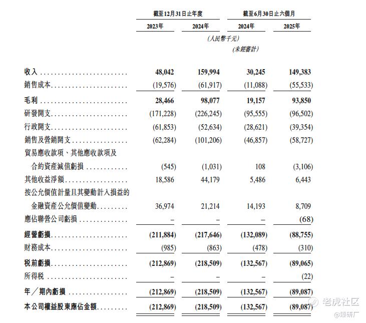 毛利率方面,截至2023年、2024年及截至2024年及2025年6月30日止六个月,公司的毛利分别为人民币0.28亿元、人民币0.98亿元、人民币0.19亿元、及人民币0.94亿元。于同期,毛利率分别为59.3%、61.3%、51.7%、63.3%及62.8%,毛利率均保持在60%左右,展现出不错的盈利修复能力。