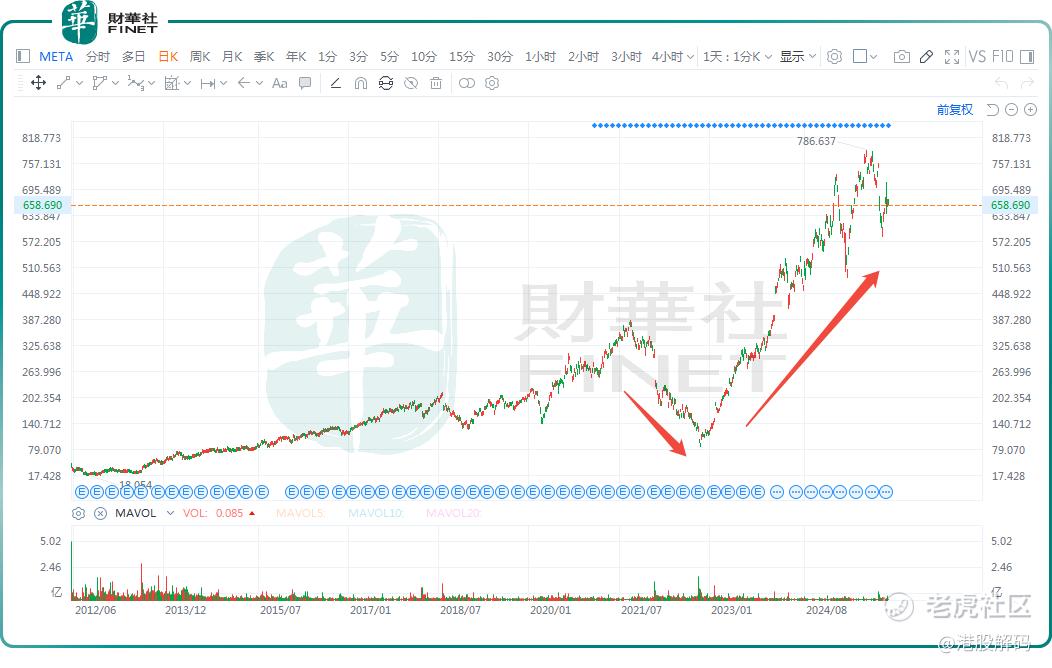 从目前在AI时代取得的成绩来看,Meta的股价早已爬出了押注元宇宙带来的深坑,并在近年持续飙涨,频创新高,整体表现并不差。