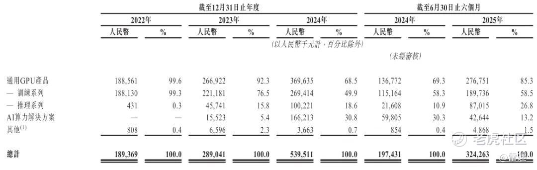 天数智芯2025年上半年来自通用GPU产品收入2.77亿,占比为85.33%,其中,来自训练系列收入占比为58.5%,来自推理系列收入为8702万元,占比为26.8%;来自AI算力解决方案收入为4264万元,占比为13.2%。