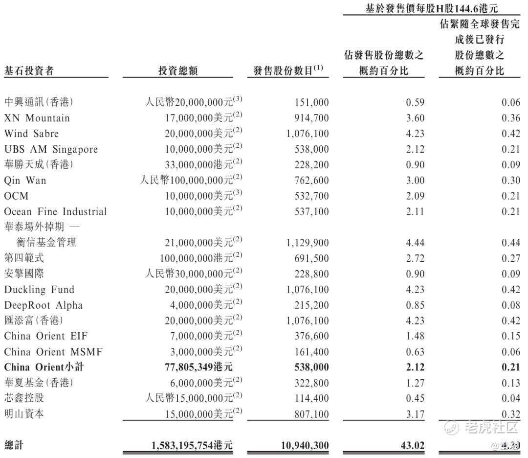 天数智芯基石投资者分别为中兴通讯(香港)、孩子王创始人汪建国旗下XN Mountain、Wind Sabre、UBS AM Singapore、华胜天成(香港)、Qin Wan、OCM、通富旗下Ocean Fine Industrial、华泰场外掉期 —衡信基金管理、第四范式、安擎国际、Duckling Fund、汇添富(香港)、China Orient、华夏基金(香港)、芯鑫控股、明山资本等,一共认购15.83亿港元。