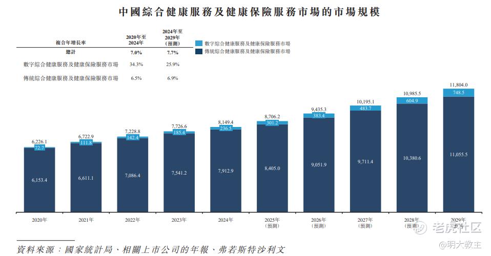 弗若斯特沙利文统计显示“数字综合健康服务及健康保险服务市场”未来还有25.9%,增速不可谓不高。