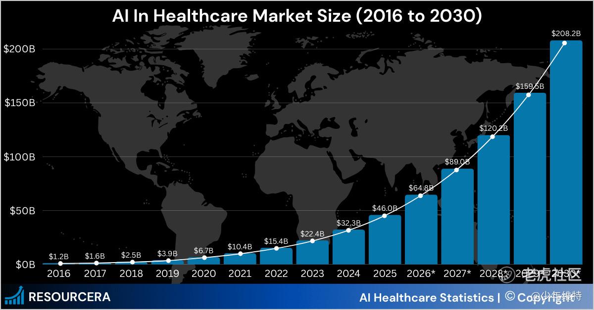 $轻松健康(02661)$ 看到个报告,预测AI+医疗2025—2030 CAGR 接近 35-40%,AI在医院运营、流程自动化和疾病风险预测等场景已快速落地