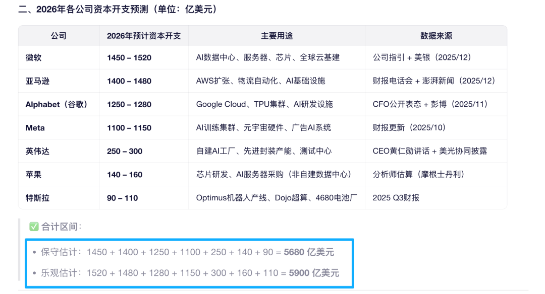 简单说,这些科技巨头只要2026年如期的把自己的钱花出去。