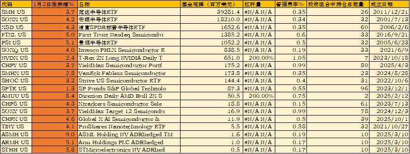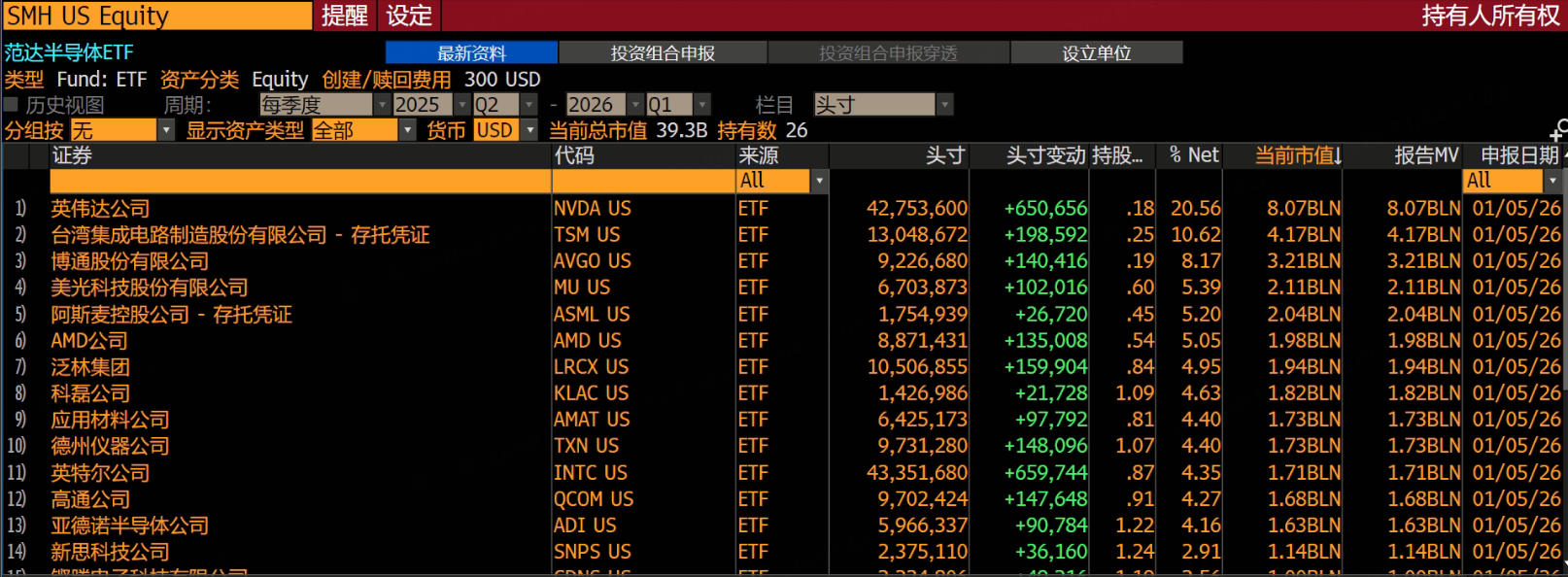 因此,2026年,半导体设备及制造链上的公司,有望获得投资者的青睐,与其将宝押在英伟达、AMD、谷歌,不如买入ETF,一键买入半导体巨头,只要AI不熄火,半导体牛市行情就很难结束!