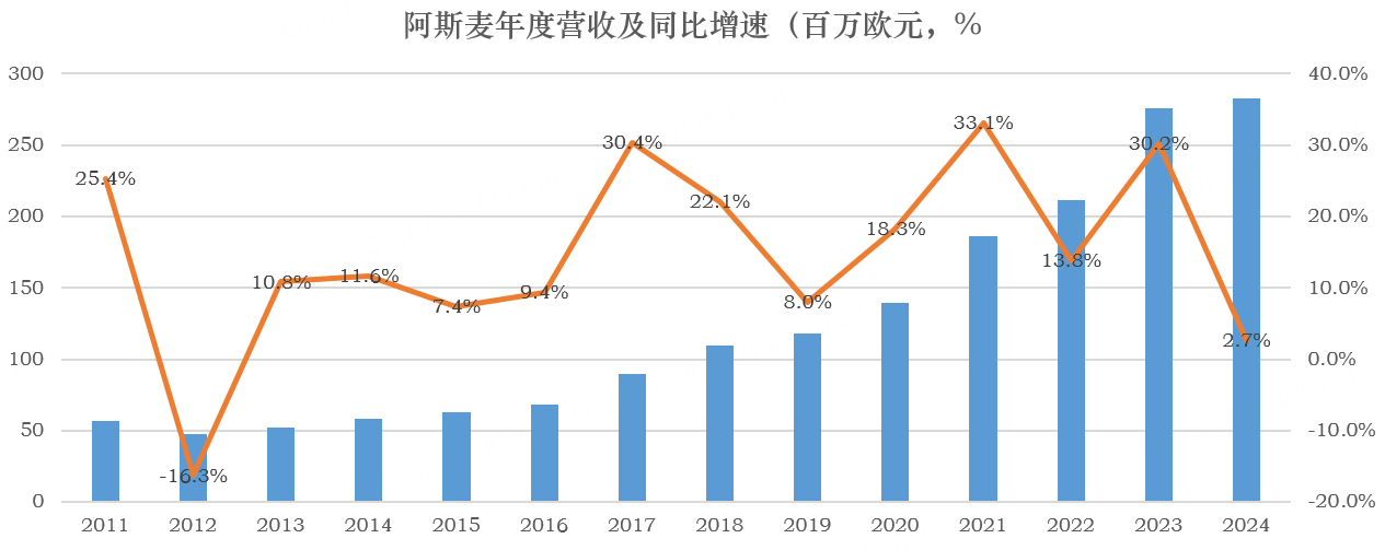 2020年至2021年,在疫情推升的居家办公需求带动下,半导体行业迎来景气周期,阿斯麦的年度销售额增速在在18%-33%左右:
