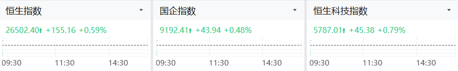 1月6日,港股三大指数高开,恒指涨0.59%,国指涨0.48%,恒生科技指数涨0.79%。